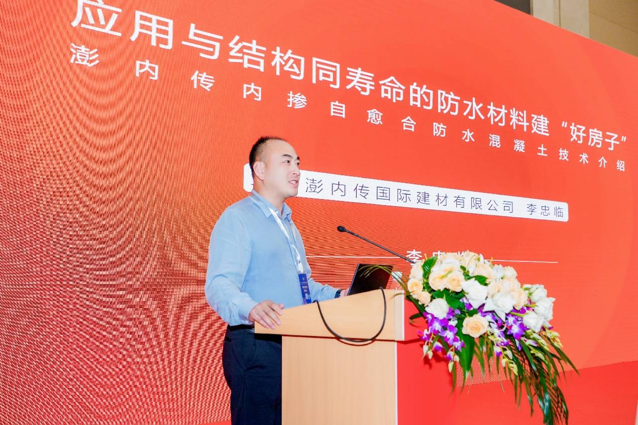 北京澎內(nèi)傳國(guó)際建材有限公司市場(chǎng)總監(jiān)李忠臨以《與結(jié)構(gòu)同壽命防水材料助力建造“好房子”》為題作了專(zhuān)題報(bào)告,首先總結(jié)分析了當(dāng)前建筑物滲漏的主要原因,然后介紹了澎內(nèi)傳防水系統(tǒng)的機(jī)理、性能與技術(shù)特點(diǎn),可從根本上解決滲漏問(wèn)題,最后與大家分享了澎內(nèi)傳結(jié)晶自愈合防水混凝土在工程中的應(yīng)用情況。